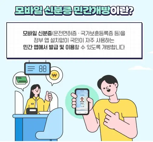 모바일 신분증을 정부 앱 설치 없이 국민이 자주 사용하는 민간앱에서 발급 및 이용할 수 있도록 개방했습니다.