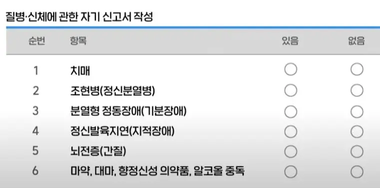 | 구분 | 1종 적성검사 | 2종 갱신 |