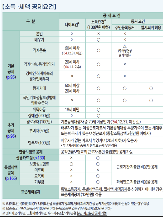 - 만 70세 이상 부모님이 계신 경우 100만 원 추가 공제.